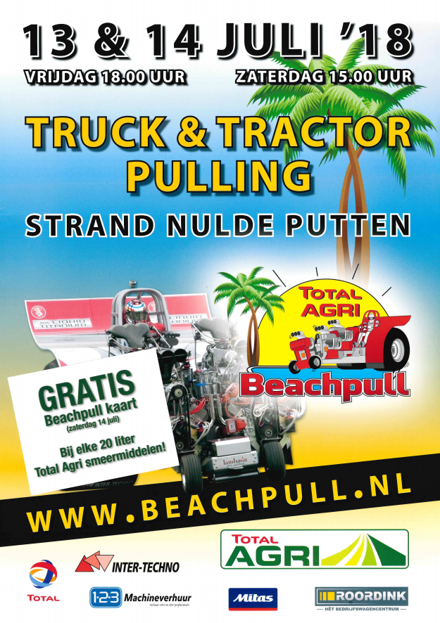 Total Agri is hoofdsponsor van de Total Agri Beachpull – één van de grootste tractorpulling evenementen in Nederland te Putten. Dit jaar is dat op 14 juli. Bij aankoop van elke 20 liter smeermiddel mogen wij een vrijkaart t.w.v. €24,50 weggeven (met een maximum van 10 kaarten). Bij aankoop van 60 liter krijgt u 3…
