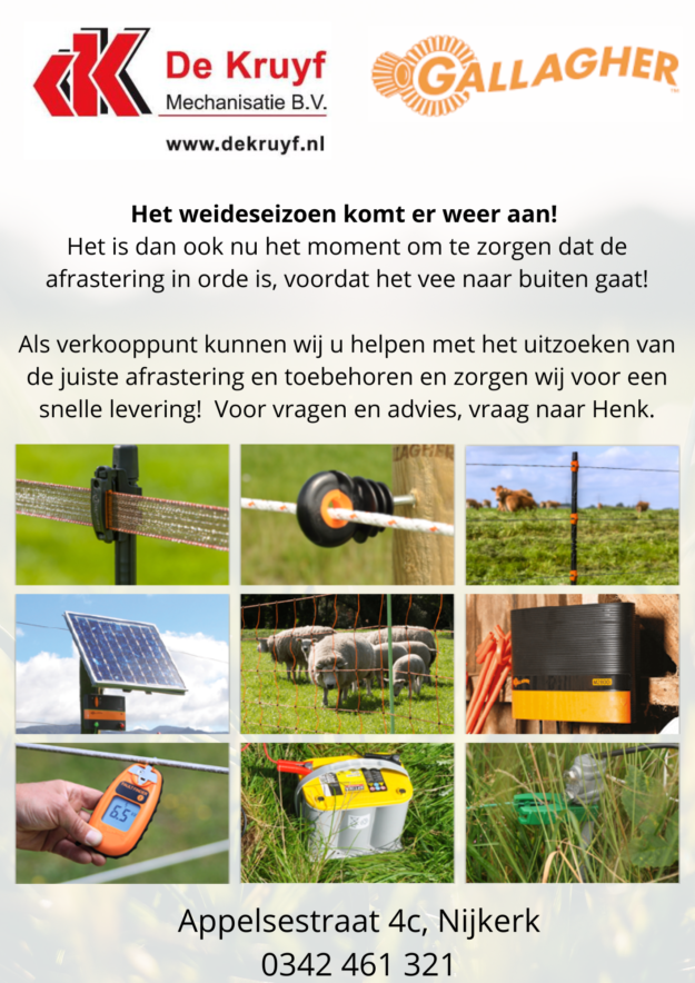 Het is dan ook nu het moment om te zorgen dat de afrastering in orde is, voordat het vee naar buiten gaat!
