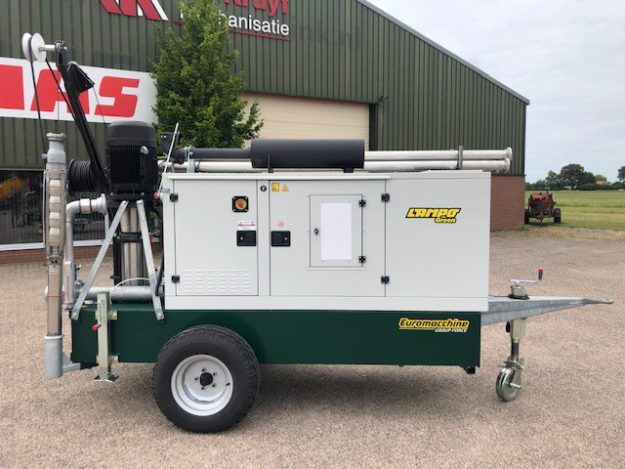 Afgeleverd motorpompset met onderwaterpomp, waarbij de dieselmotor een generator aandrijft.